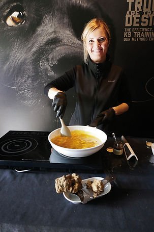 Auf Nachfrage, will Olivier erst nicht so richtig mit der Sprache herausrücken, doch dann entlocke ich ihm sein Geheimnis, wie man quasi jeden Hund zum Trüffeljäger ausbilden kann.
